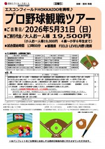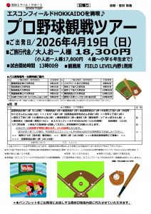 4月~5月出発の発売を開始しました! 座席は全コース1階FIELD内野席をご用意! エスコンフィールドHOKKAIDOを満喫しよう♬