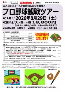 プロ野球観戦ツアー 発売分全て満席のため、追加発売開始!!今回は伊達から出発!